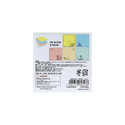 仕様1:柄 PN コミカルシーンズ第2弾デザイン イエロー内容 付箋 5柄 各20枚 計100枚パッケージ ヘッダー袋サイズ 75mm×75mm×11mm材質 紙