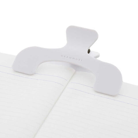 ウカンムリの形が書籍やノートの中央部分を避けて留めるから、内容を隠さない。