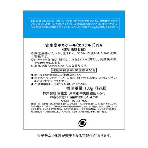 資生堂 HONEY CAKE (ホネケーキ) エメラルドNA (100g) 固形[洗顔石鹸]