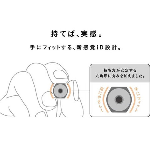 ボールサインiD(R)シングルは、六角形と丸形を組み合わせたオリジナルの「iD形状」を継承しながら、木目のようなシボ加工を追加し、凹凸感が加わることでグリップ効果を高めました。