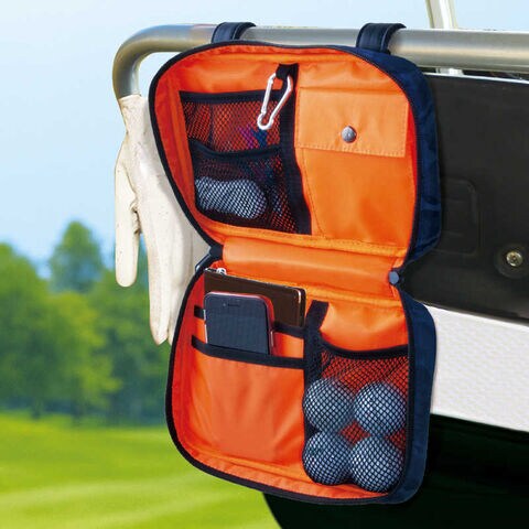 ゴルフプレーに必要な小物をまとめてカートにパチッと止められる便利なバッグ。