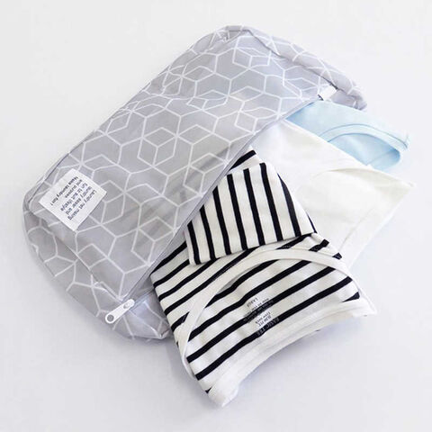 ●スーツケースにスッポリおさまるポーチ型で、洗濯物を入れて持ち帰り、まるごと洗濯機で洗えます。