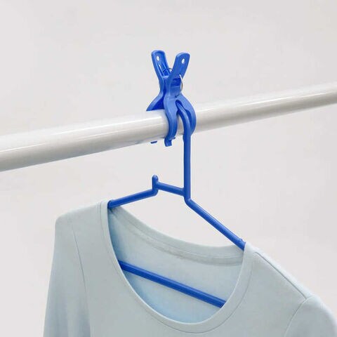 竿に掛けたハンガーの上からはさめるので、風等によるハンガーの移動を防ぎます。