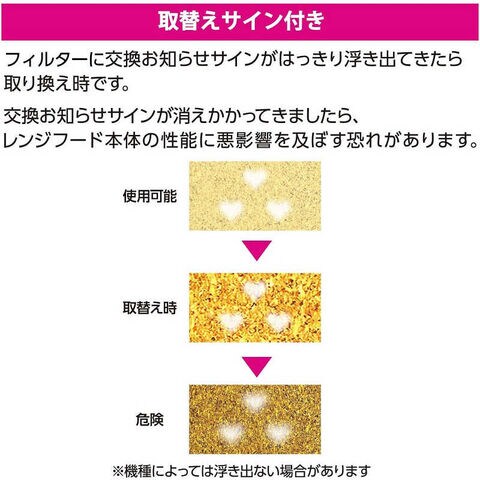 吸油量約2倍 (当社比) の厚手フィルターが油汚れをしっかりキャッチし、お掃除の負担を軽減する。