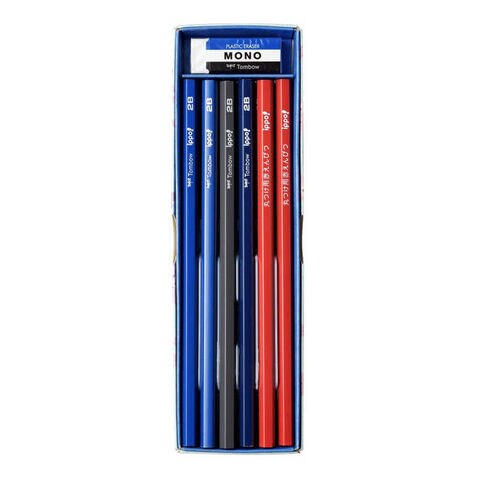 ●かきかた鉛筆(6角軸・2B)10本、丸つけ用赤鉛筆(6角軸)2本、消しゴム1個のセット。