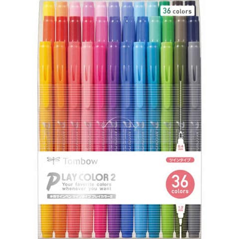 ●水性カラーサインペンのロングセラー「プレイカラー2」。好評の極細プラ芯と太書き用繊維芯のツインタイプ。