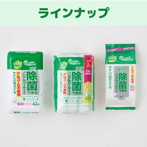 ●拭くだけで簡単に除菌!ノンアルコールで菌を99.9%除去!