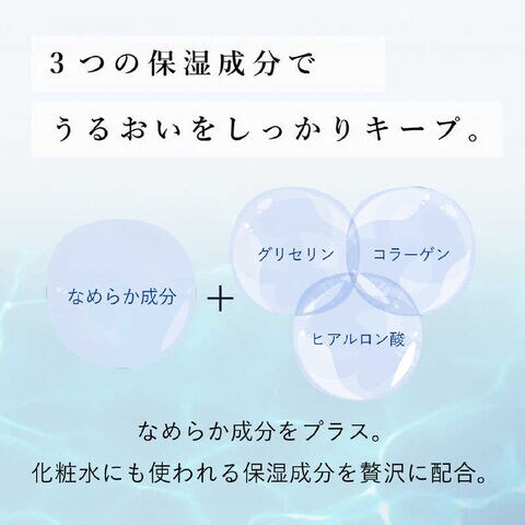 なめらかな肌ざわりで刺激が少なく、使用後のお肌にしっとりうるおいを与えます