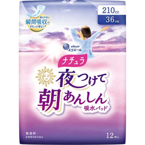 大王製紙 ナチュラ 夜つけて朝安心吸水パッド 36cm 210cc 12枚