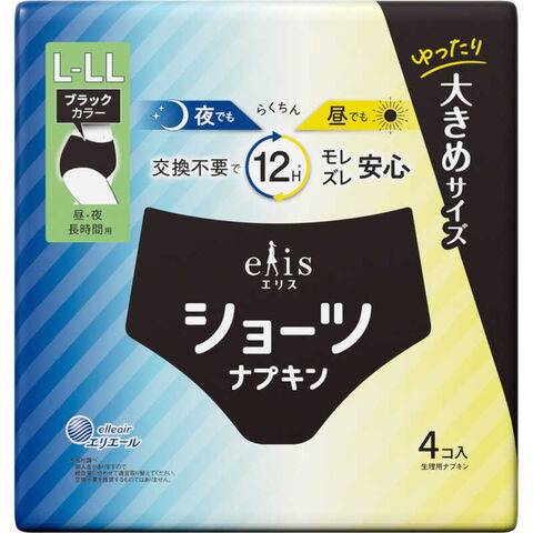 大王製紙 エリスショーツ L~LL 昼・夜 長時間用 ブラックカラー 4枚入