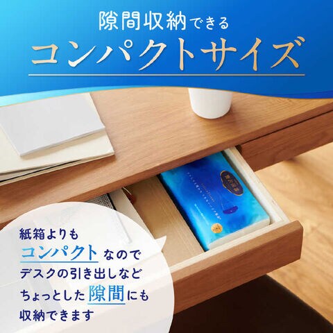 ●紙箱を使わないコンパクト設計で、お部屋だけでなく、外出時のバッグの中や水回り などの狭いスペースでも使いやすい大きさです。