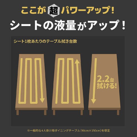 ●液量たっぷりシート(ウエット感が持続するため、1枚で拭ける範囲が広がります。