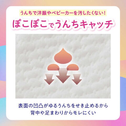 ●表面のぽこぽこでゆるうんちをキャッチ!背中や足まわりからモレにくい。
