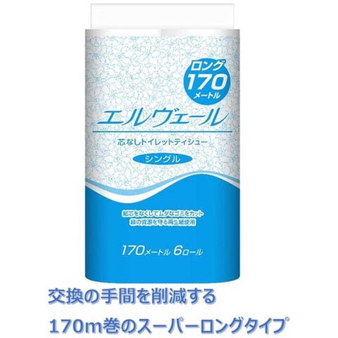大王製紙 エルヴェールトイレットティシューシングル170m6ロール芯なし×8パック ケース販売 723282_