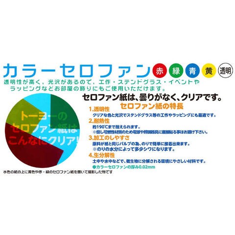 生分解性(土中や水中などで微生物に分解される環境にやさしい素材)透明性が高く、光沢があるので工作・ステンドグラス・ラッピングなどにもご使用いただけます。
