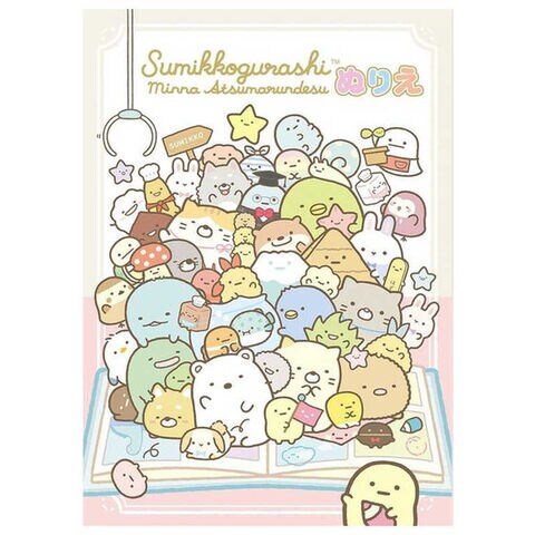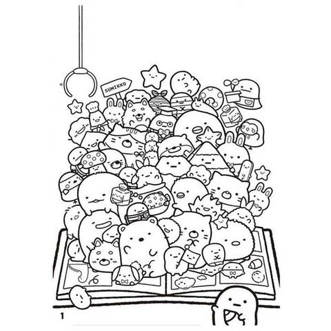 賑やかに大集合した、すみっコぐらしのぬりえです。