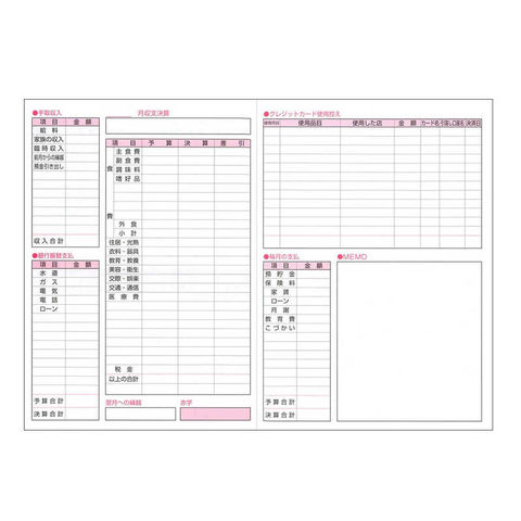 A5サイズ/仕様:フリー月間予定表・月間収支・週間収支・メモ・横罫/192頁