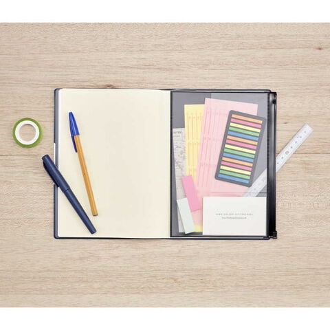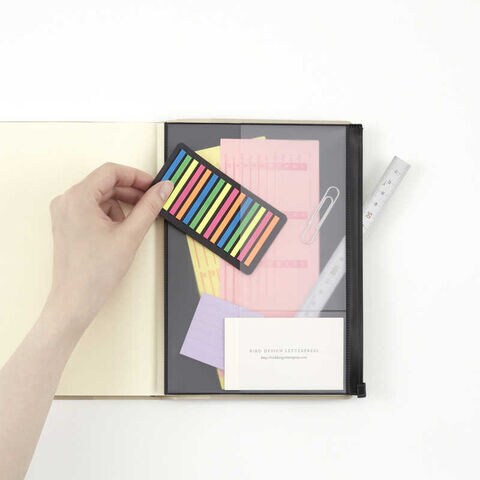 差し込みパーツ付きなのでノートカバーや手帳に差し込むことでお手持ちの手帳やノートに機能を追加することができます。