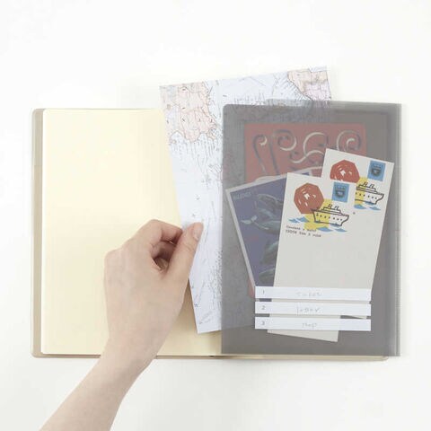 差し込みパーツ付きなのでノートカバーや手帳に差し込むことでお手持ちの手帳やノートに機能を追加することができます。