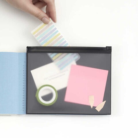 ちょっとした小物や名刺を入れておくのに便利なファスナーポケットでお手持ちの横型ノートや手帳をより便利にカスタマイズできます。