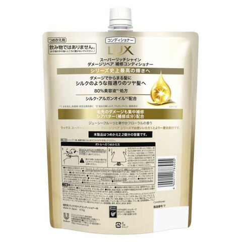ユニリーバJCM LUX(ラックス)スーパーリッチシャイン ダメージリペア 補修コンディショナー詰替 大容量 10%増量 616g ラツクスDCDダイ10パーセント