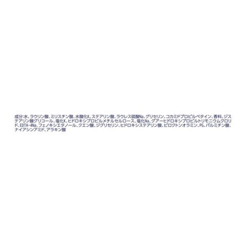水、ラウリン酸、ミリスチン酸、水酸化K、ステアリン酸、ラウレス硫酸Na、グリセリン、コカミドプロピルベタイン、香料、ジステアリン酸グリコール、塩化K、ヒドロキシプロピルメチルセルロース、塩化Na、グアーヒドロキシプロピルトリモニウムクロリド、EDTA-4Na、フェノキシエタノール、クエン酸、ジグリセリン、ヒドロキシステアリン酸、ピロクトンオラミン、PG、パルミチン酸、ナイアシンアミド、アラキン酸