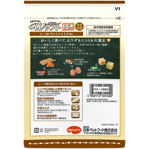 日本ペットフード ビタワン君のWソフト 15歳以上 ビーフ味・やわらかささみ添え 200g(50g×4袋入)
