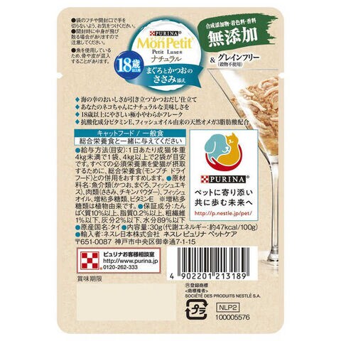 ネスレ日本 モンプチ プチリュクス パウチ ナチュラル 18歳以上 まぐろとかつおのささみ 30g
