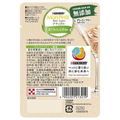 ネスレ日本 モンプチ プチリュクス パウチ ナチュラル 成猫 まぐろのしらす添え 30g