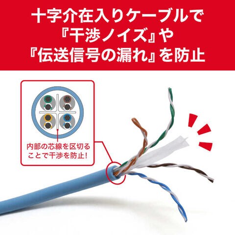 内在した十字介在により『干渉ノイズ』や『伝送信号の漏れ』を防止して、通信エラーを防ぎます。
