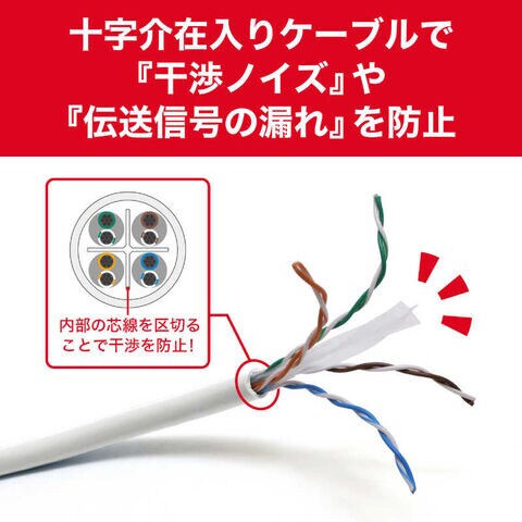 内在した十字介在により『干渉ノイズ』や『伝送信号の漏れ』を防止して、通信エラーを防ぎます。