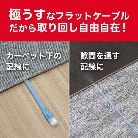 カーペットの下やドアのすき間などの配線に便利な極うすケーブルを採用しています。