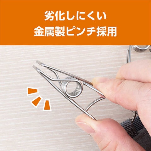 ●ハンガーやタオル掛けに簡単に取り付けられる携帯用収納ピンチ