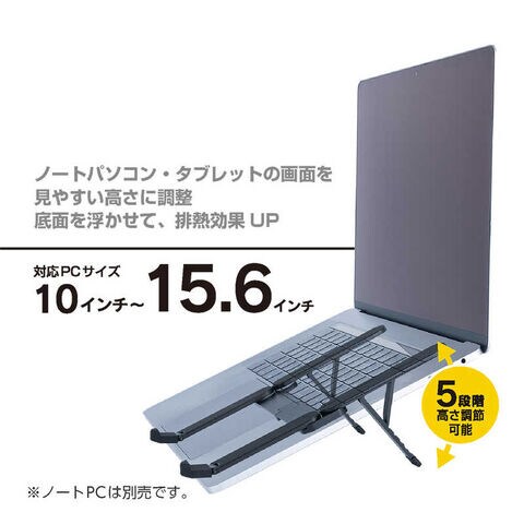 排熱ポートのある底面を浮かせる事により、通気性を確保し、ノートパソコンの熱暴走や熱による負荷を軽減します。