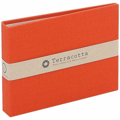 ●テラコッタとは、“焼いた土”という意味を持ち“ぬくもり・親しみやすさ”をテーマに素材感のある布地表紙とクラフト台紙を使用した雑貨スタイルのアルバムです。