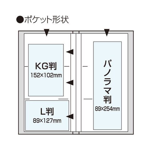 ・L判写真120枚収納可能、またはKG判、パノラマ判が40枚収納できるポケットアルバム。