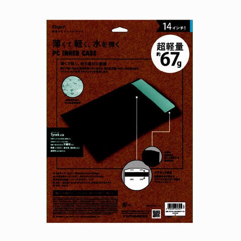 仕様1:[参考対応機種]14インチまでのノートPC[ノートPC収納部サイズ]内寸:約W245xD7xH325mm[本体サイズ]外寸:W265xD10xH340mm[重量]約67g[材質]表生地:Tyvek(ポリエチレン)、内生地:ポリエステル