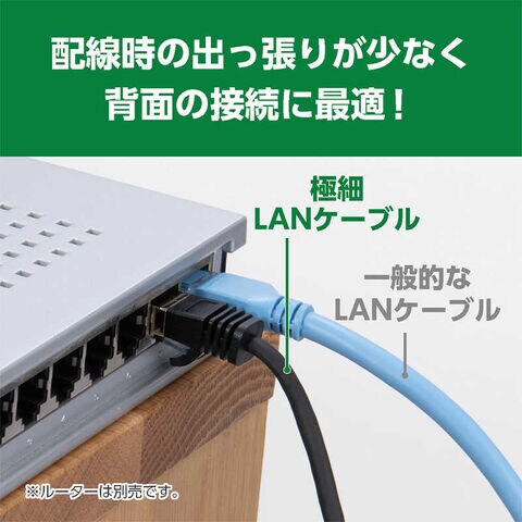 極細ケーブルで狭い場所の配線や持ち運びに便利です。