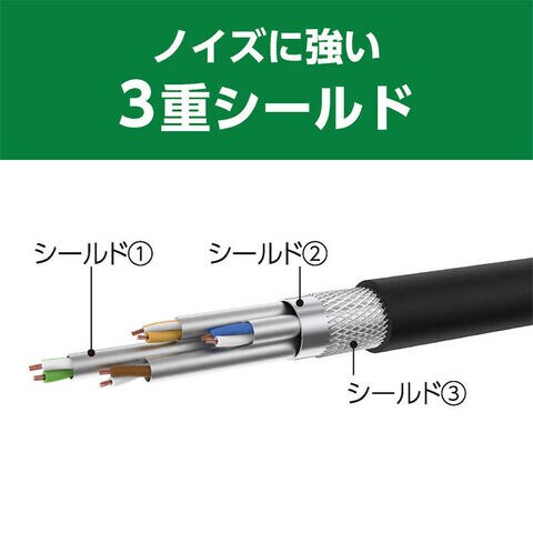 ●高いノイズ耐性を実現する三重シールドケーブル採用。