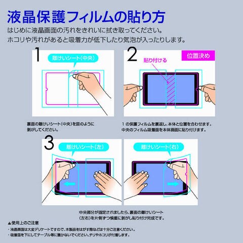 フィルムを貼った後、特殊シリコン製吸着面が、時間経過とともに気泡を分散し目立たなくなります。