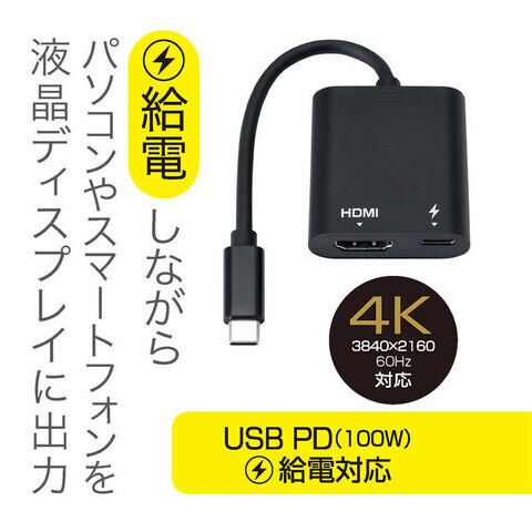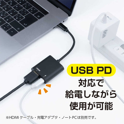 USB PD対応で給電しながらスマートフォンやPCの画面をTVに出力できます。