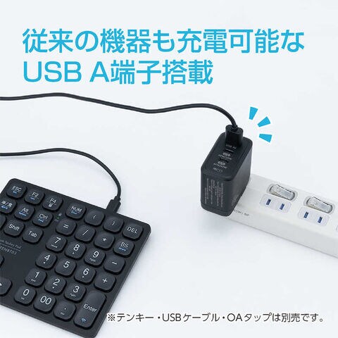 USB PD非対応の機器も充電可能なUSB-A端子搭載。