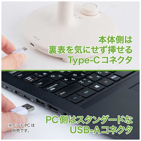 USB-Aポート接続で動作しますのでノートPCだけでなく、別売りのUSBACアダプタと組み合わせても使用可能です。