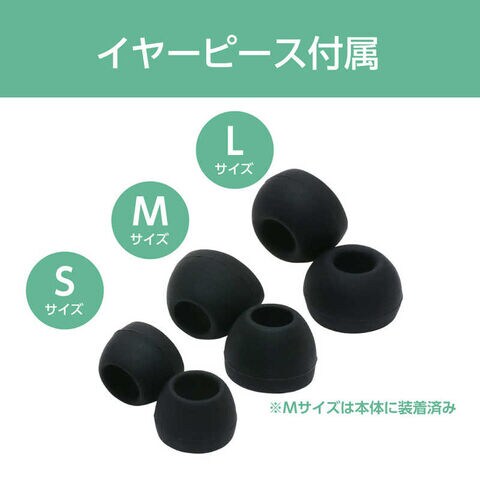 付属品:イヤーピース(S/M/Lサイズ※Mサイズ装着済)、取扱説明書