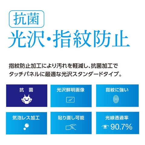 指紋防止加工により汚れを軽減し、抗菌・フッ素加工でタッチパネルに最適なスタンダードタイプ
