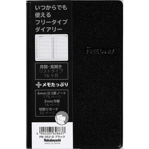 ナカバヤシ フリ-ダイアリ-/厚型/ブラック PB352D