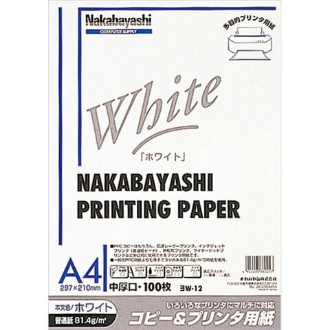 ナカバヤシ インクジェット&レーザー用 コピー&ワープロ用紙 A4白 ヨW12