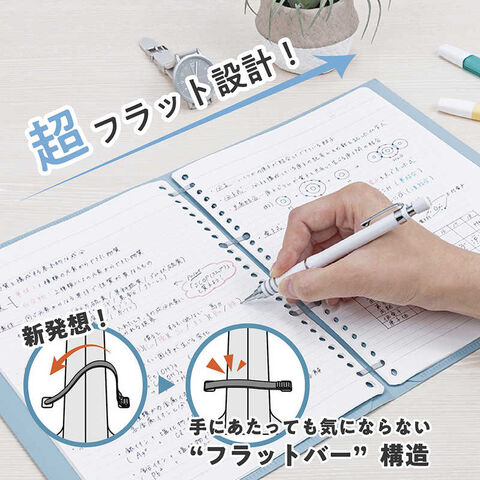 独自開発の超薄型綴具「フラットバー」を採用し、筆記時に手に当たっても気にならない薄さを実現しました。