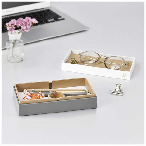 デスク周りのケーブルの収納にも便利です。在宅のデスクやオフィスにも映える、マットな質感のくすみカラーを採用しました。同シリーズの製品を重ねて使うこともできます。