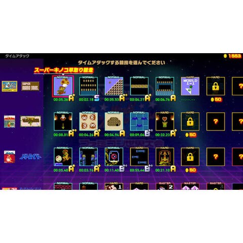 ファミリーコンピュータ(ファミコン)のゲームでタイムアタックに挑戦!『スーパーマリオブラザーズ』や『ゼルダの伝説』など、ファミコンの13タイトルから切り出した150以上の競技で最速タイムに挑みます。